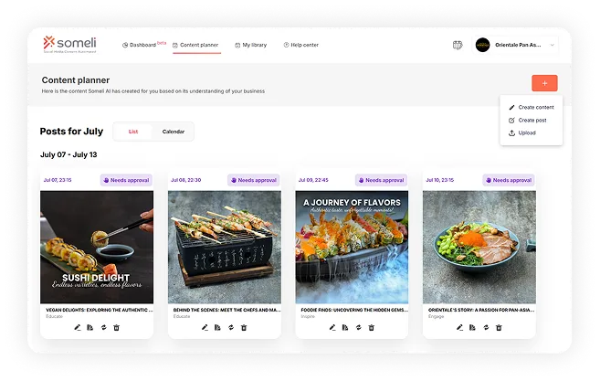 Someli's AI is trained on a vast database of foods and restaurant content and industry trends. It combines this knowledge with your business unique offerings, and brand voice to create custom content that resonates with your audience. The AI continuously learns from engagement metrics to refine its content creation.