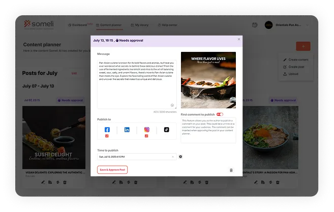 Someli AI automates your content calendar of posts and reels ready for you to just review and approve.